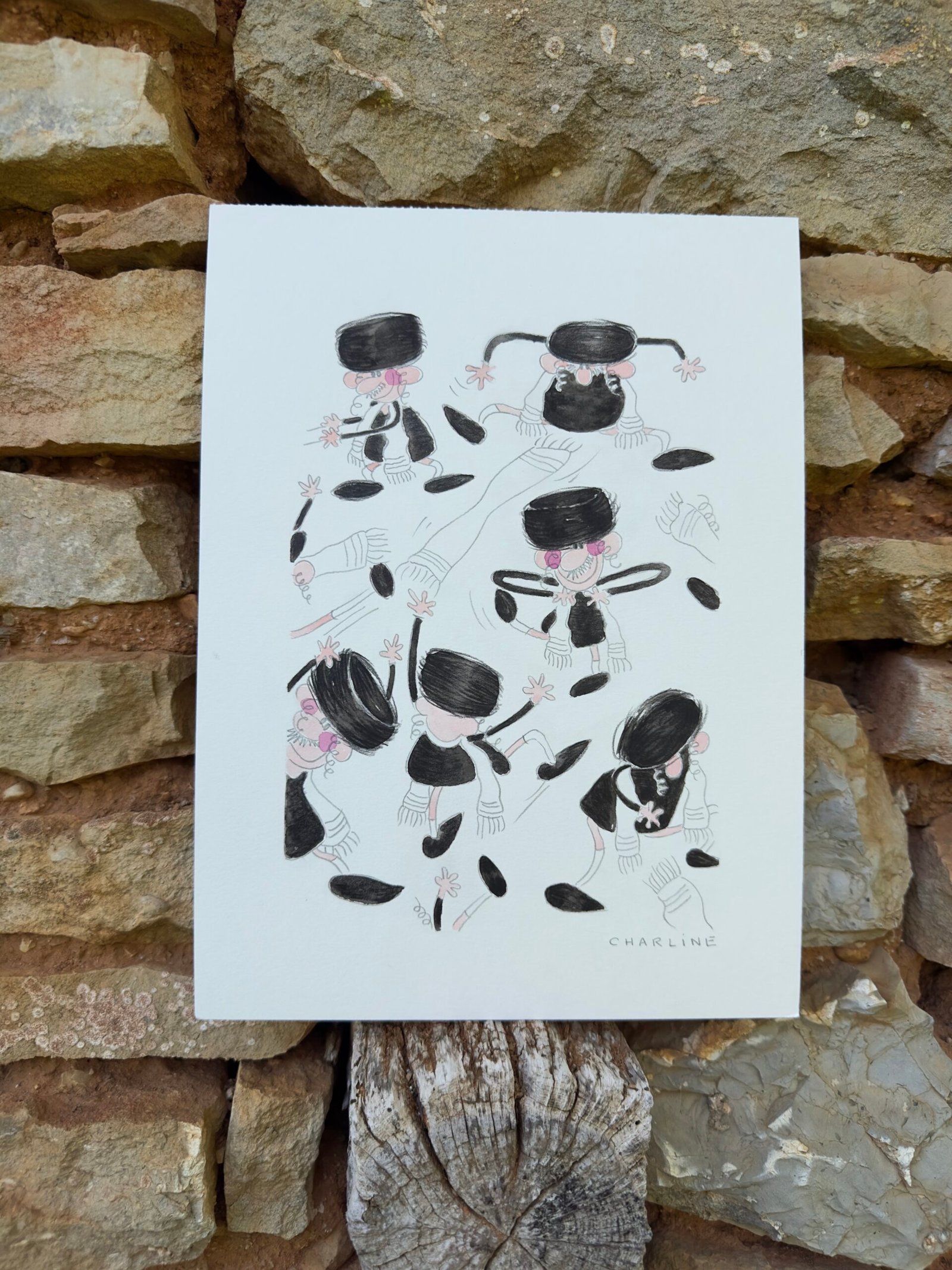 Le danseur étoile est une aquarelle inspirée de l’un de mes films préférés de l’enfance : Les Aventures de Rabbi Jacob.
