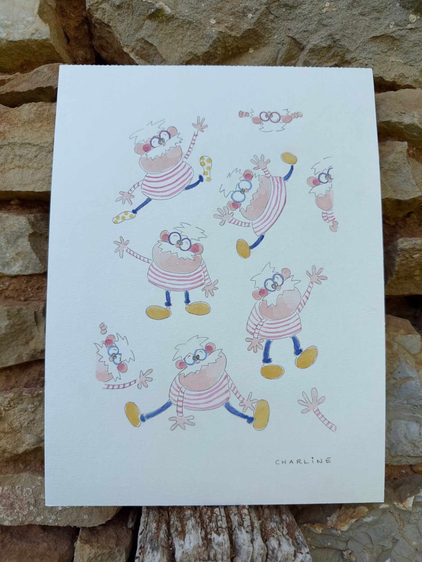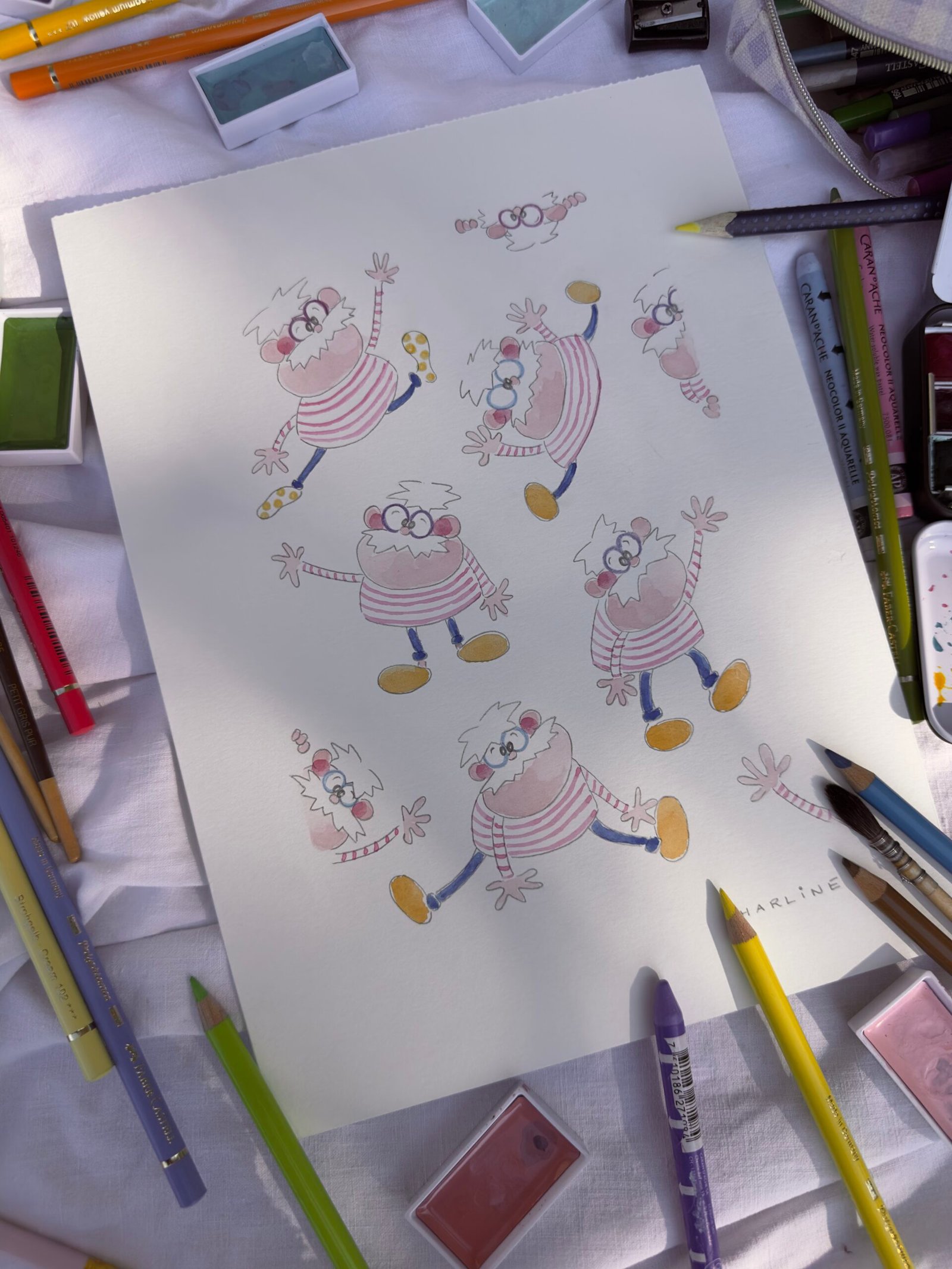 Technique : aquarelle intensifiée aux crayons de couleur